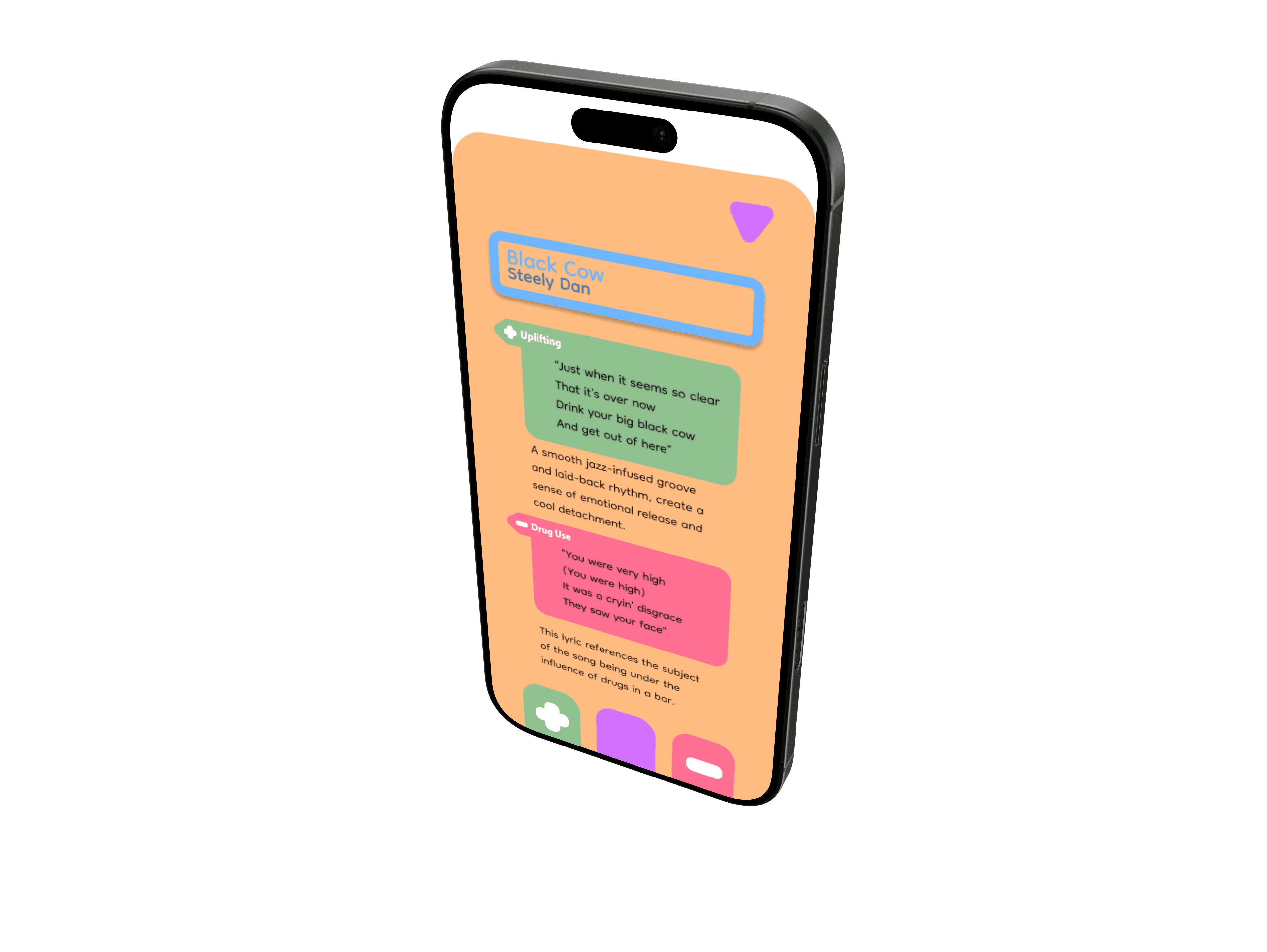Located below the song's tags, the Aura feature brings up a detailed description of the song's subject matter, allowing the user to analyze deeper themes.