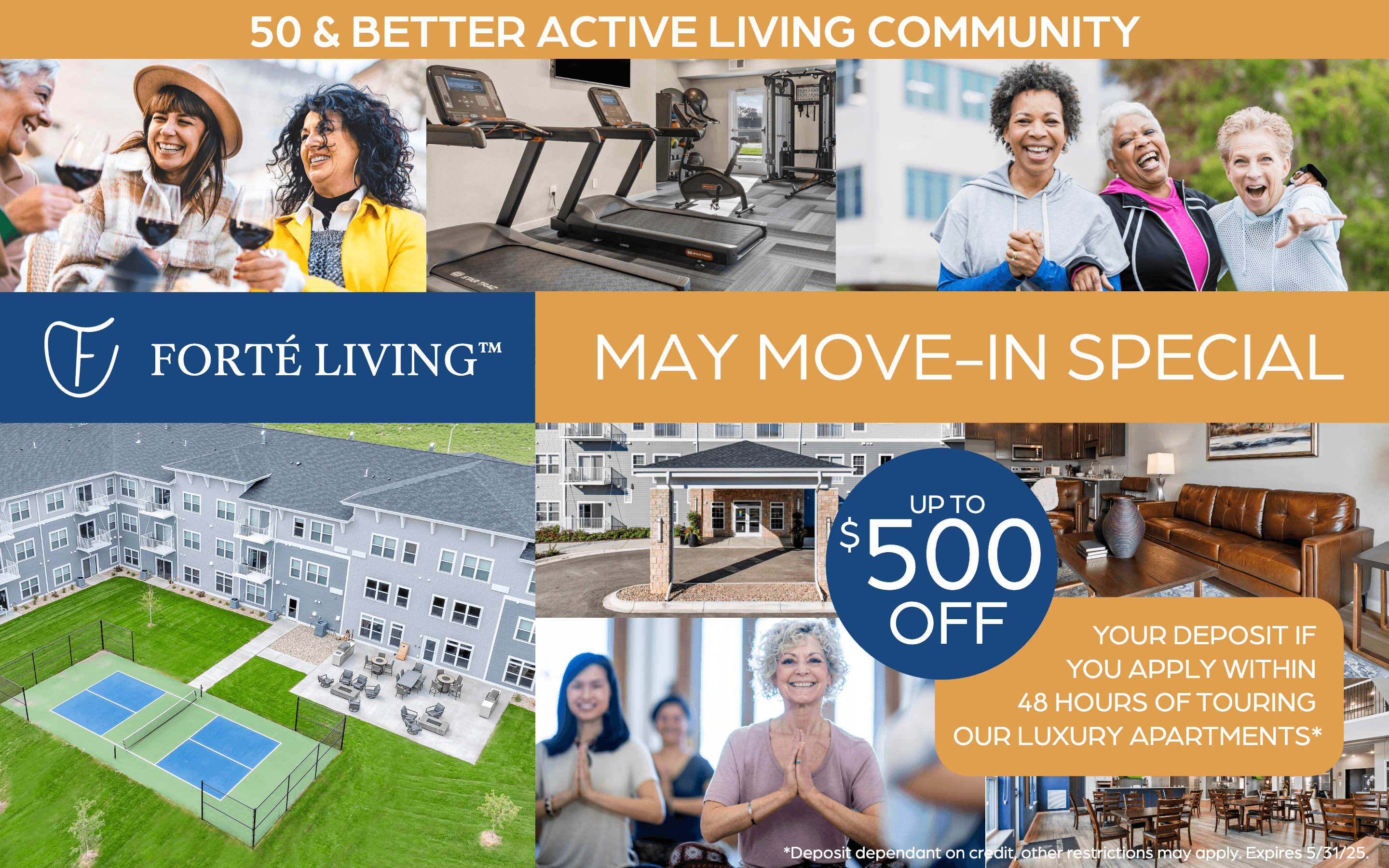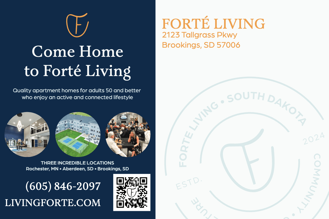 Forte Living, a chain of 55+ living communities across the Midwest, was looking to fill up their Brookings, SD location as they plan another building. My task was to create a series of mailers that would be sent out to prospective tenants, higlighting deals and amenities.